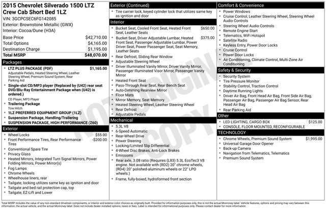 Discover the perfect combination of power, capability, and refined comfort in this 2015 Chevrolet Silverado 1500 LTZ 1LZ. This well-equipped truck boasts a striking Brown exterior and a host of premium features that elevate your driving experience.