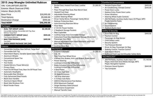 Black Clearcoat 2015 Jeep Wrangler Unlimited Rubicon 4WD 5-Speed Automatic 3.6L V6 24V VVT