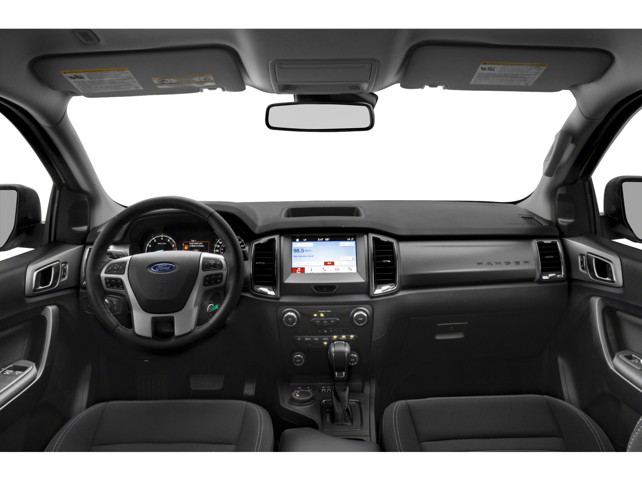 The Ranger Lariat's impressive list of features extends beyond the cabin, with 18-inch machined aluminum wheels, body-color bumpers, and a rear step bumper that enhance both the truck's appearance and functionality. Safety is also a top priority, with a suite of advanced driver-assist technologies, including Blind Spot Monitoring, Rear Cross-Traffic Alert, and Lane Departure Warning.