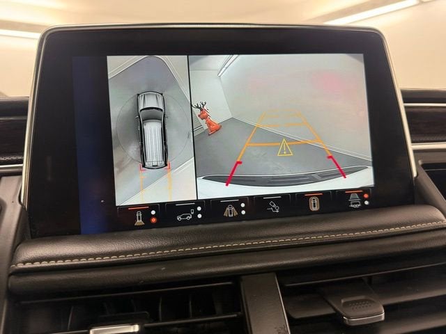 Advanced Technology Package (Adaptive Cruise Control, Enhanced Automatic Emergency Braking, Enhanced Automatic Parking Assist, and Reverse Automatic Braking), Advanced Trailering Package (Hitch Guidance w/Hitch View, Integrated Trailer Brake Controller, Smart Trailer Integration Indicator, and Trailer Side Blind Zone Alert), Enhanced Display & Alert Package (15 Diagonal Multi-Color Head-Up Display, HD Surround Vision, Inside Rearview Auto-Dimming Rear Camera Mirror, Rear Camera Mirror Washer, and Rear Pedestrian Alert), License Plate Front Mounting Package, Max Trailering Package (Extra Capacity Cooling System), Preferred Equipment Group 1LZ (1st & 2nd Row Color-Keyed Carpeted Floor Mats, 3rd Row 60/40 Power-Folding Split-Bench Seat, Auto-Dimming Inside Rear-View Mirror, Bose 10-Speaker Centerpoint Surround Audio Sys Ft, Bright Front & Rear Door Sill Plates, Chrome Door Handles w/Body-Color Strip, Chrome Mirror Caps, Color-Keyed Carpeting Floor Covering, Driver & Front Outboard Passenger Airbags, Dual Exhaust System, Enhanced Driver Information Center, Floor Console, Hands-Free Rear Power Programmable Liftgate, Heated 2nd Row Outboard Seats, Heated Steering Wheel, Infotainment Display, Lane Change Alert w/Side Blind Zone Alert, LED Daytime Running Lamps, Memory Settings, Outside Heated Power-Adjustable Mirrors, Power Release 2nd Row Bucket Seats, Power Tilt & Telescopic Steering Column, Rear Cross Traffic Alert, Remote Start, Safety Alert Seat, SiriusXM Radio w/360L, Universal Home Remote, Wireless Charging, and Wrapped Steering Wheel), Jet Black Leather, 10 Speakers, 20 x 9 Polished Aluminum Wheels, 3.23 Rear Axle Ratio, 3rd row seats: split-bench, 4-Wheel Disc Brakes, ABS brakes, Adaptive suspension, Air Conditioning, Alloy wheels, AM/FM radio: SiriusXM with 360L, Apple CarPlay/Android Auto, Auto High-beam Headlights, Auto-dimming door mirrors, Auto-dimming Rear-View mirror, Auto-leveling suspension, Automatic temperature control, Black Name Plates (LPO), Brake assist, Bumpers: body-color, Compass, Delay-off headlights, Driver door bin, Driver vanity mirror, Dual front impact airbags, Dual front side impact airbags, Dual-Pane Power Panoramic Sunroof, Electronic Stability Control, Emergency communication system: OnStar and Chevrolet connected services capable, Four wheel independent suspension, Front & Rear Black Bowtie Emblems (LPO), Front anti-roll bar, Front Bucket Seats, Front Center Armrest, Front dual zone A/C, Front High-Back Reclining Bucket Seats, Front reading lights, Fully automatic headlights, Garage door transmitter, Heated & Ventilated Driver & Front Passenger Seats, Heated door mirrors, Heated Driver & Front Passenger Seats, Heated front seats, Heated rear seats, Heated steering wheel, Illuminated entry, Low tire pressure warning, Magnetic Ride Control Suspension, Memory seat, Navigation System, Occupant sensing airbag, Outside temperature display, Overhead airbag, Overhead console, Panic alarm, Passenger door bin, Passenger vanity mirror, Perforated Leather Seat Trim, Power door mirrors, Power driver seat, Power Liftgate, Power passenger seat, Power steering, Power windows, Premium audio system: Chevrolet Infotainment 3 Premium, Radio: Chevrolet Infotainment 3 Premium System, Rain sensing wipers, Rear air conditioning, Rear anti-roll bar, Rear reading lights, Rear Seat Media System, Rear window defroster, Rear window wiper, Remote keyless entry, Roof rack: rails only, Security system, Speed control, Speed-sensing steering, Split folding rear seat, Spoiler, Steering wheel memory, Steering wheel mounted audio controls, Super Cruise (DISC), Tachometer, Telescoping steering wheel, Tilt steering wheel, Traction control, Trip computer, Turn signal indicator mirrors, Variably intermittent wipers, Ventilated front seats, Voltmeter, Wheels: 22 Multi-Spoke Gloss Black (LPO), and Wheels: 22 x 9 Steel Interim (LPO) Jet Black Leather.