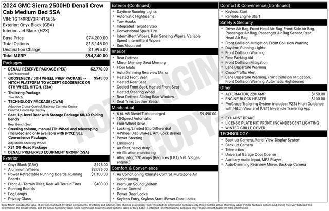 CARFAX One-Owner. Onyx Black 2024 GMC Sierra 2500HD Denali 4WD 10-Speed Automatic Duramax 6.6L V8 Turbodiesel 10-Speed Automatic, 4WD, Jet Black Leather.